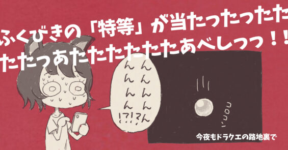 いつもの朝・・・? ぽりたんの朝は、ドラクエ10の「無料ふくびき」で始まる。 ドラクエ10は、毎日2回、無料でふくびきできるのだ。13年間、毎日欠かさずやってる。 おや? 3等以上だと、玉演出が出る。 ひさびさに出た。 … 続きを読む ふ、ふくびきの「特等」が当たったったたっあたたたたあべしっっ!!