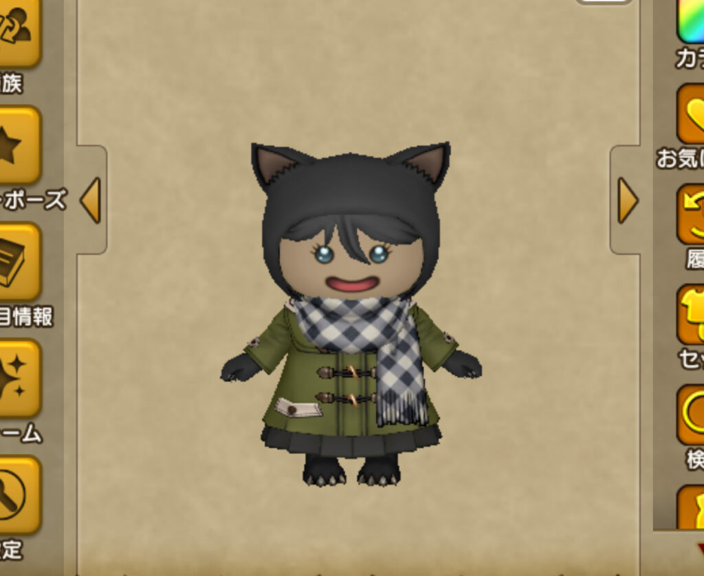 つまり、プクリポってもともと猫耳付きの生き物なので、そこにさらに猫耳を付けたコーデは、こういう頭巾に変換されちゃうわけ。